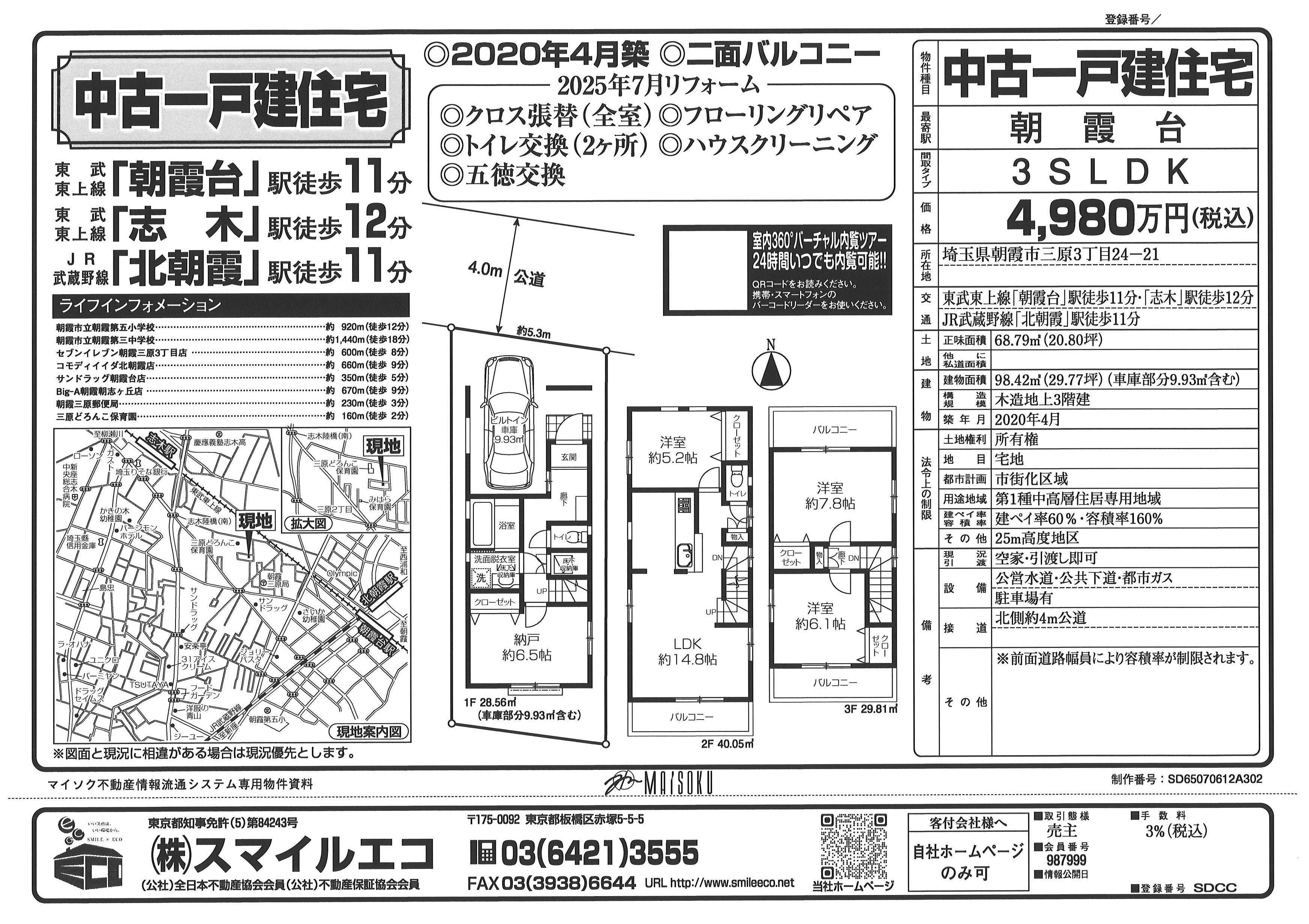 東武東上線「朝露台」駅徒歩11分・「志木」駅徒歩12分JR武蔵野線「北朝露」駅徒歩11分