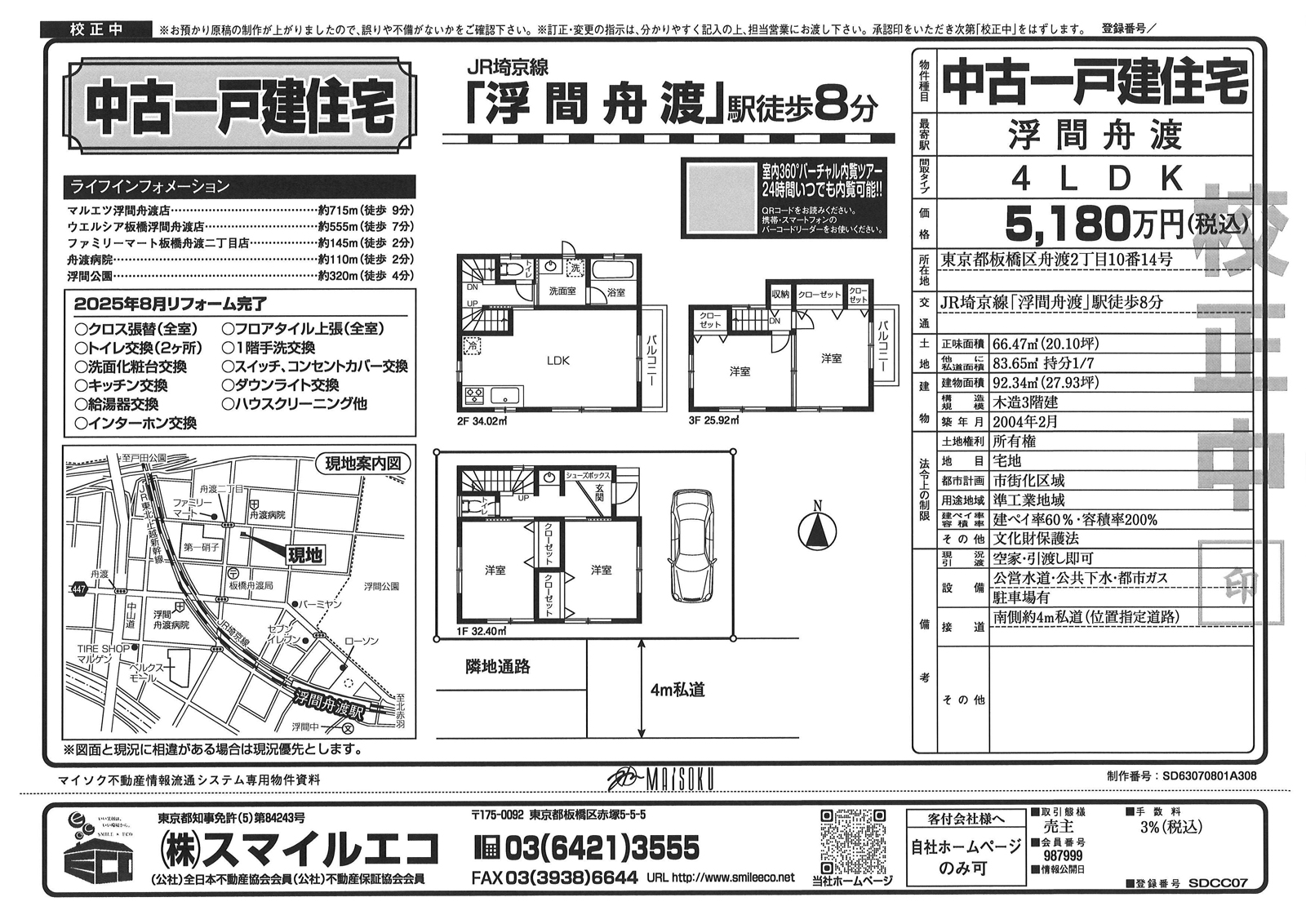 64.81㎡(19.60坪)他に私道負担18.37㎡あり