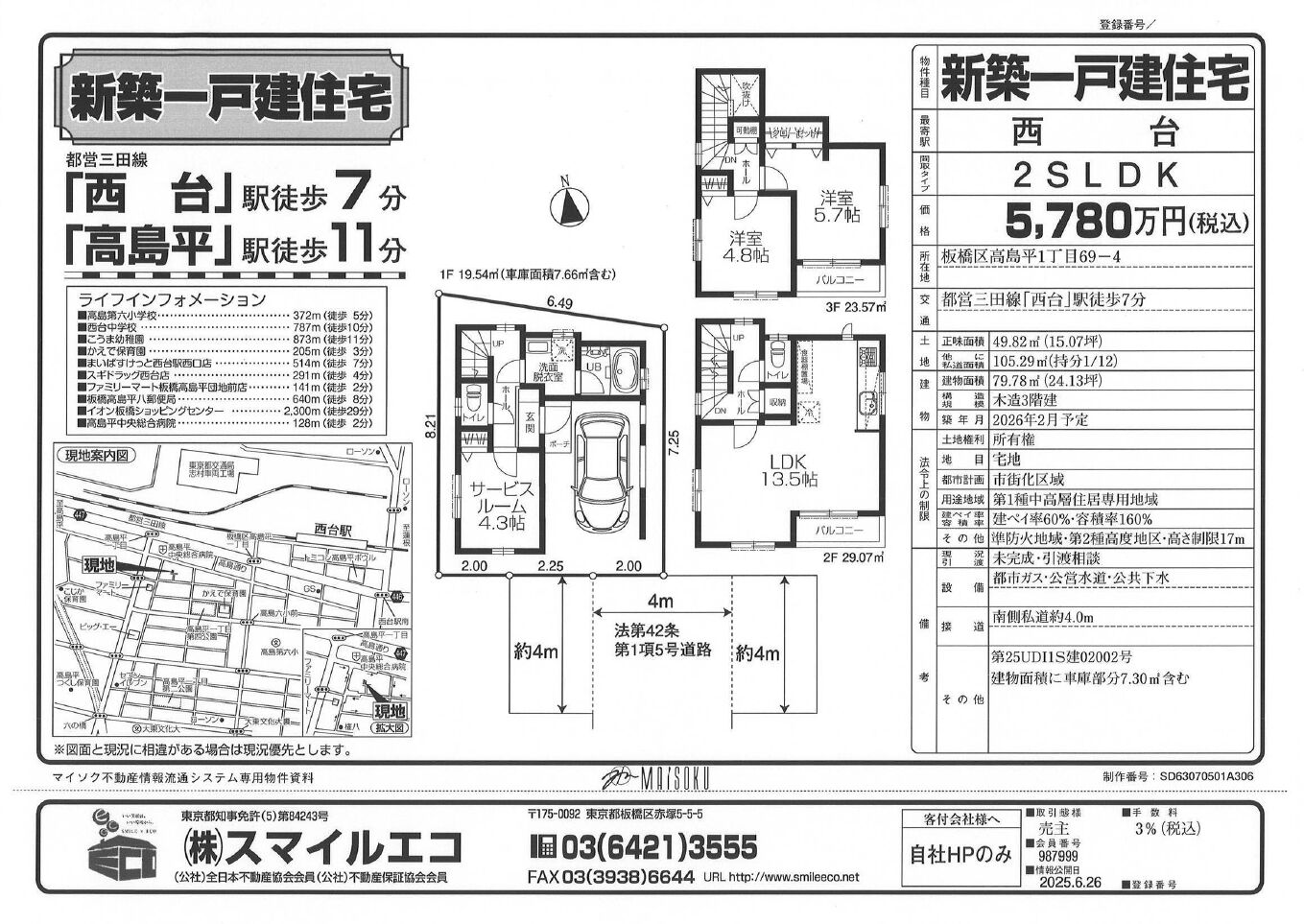 64.81㎡(19.60坪)他に私道負担18.37㎡あり